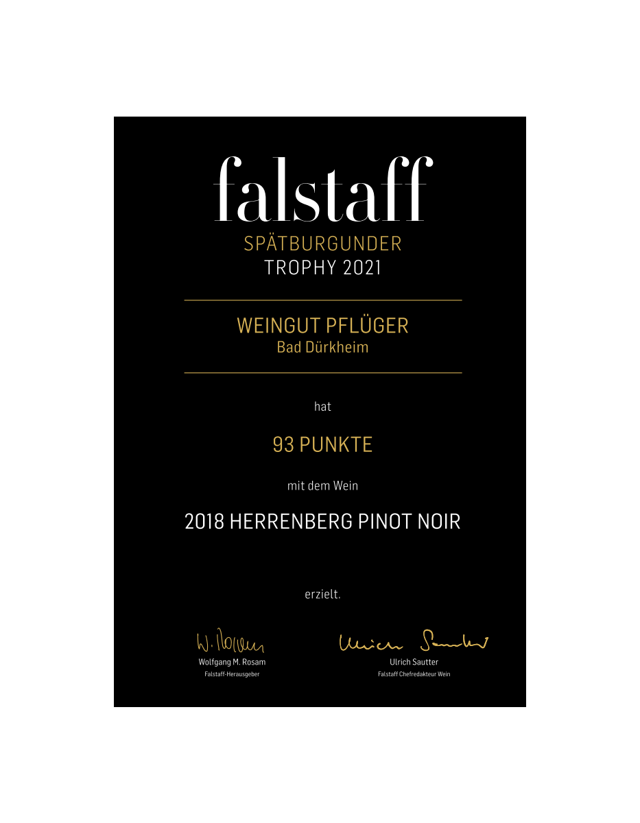 Falstaff Spätburgunder Trophy 2021: 93 Punkte für Pinot Noir Herrenberg 2018